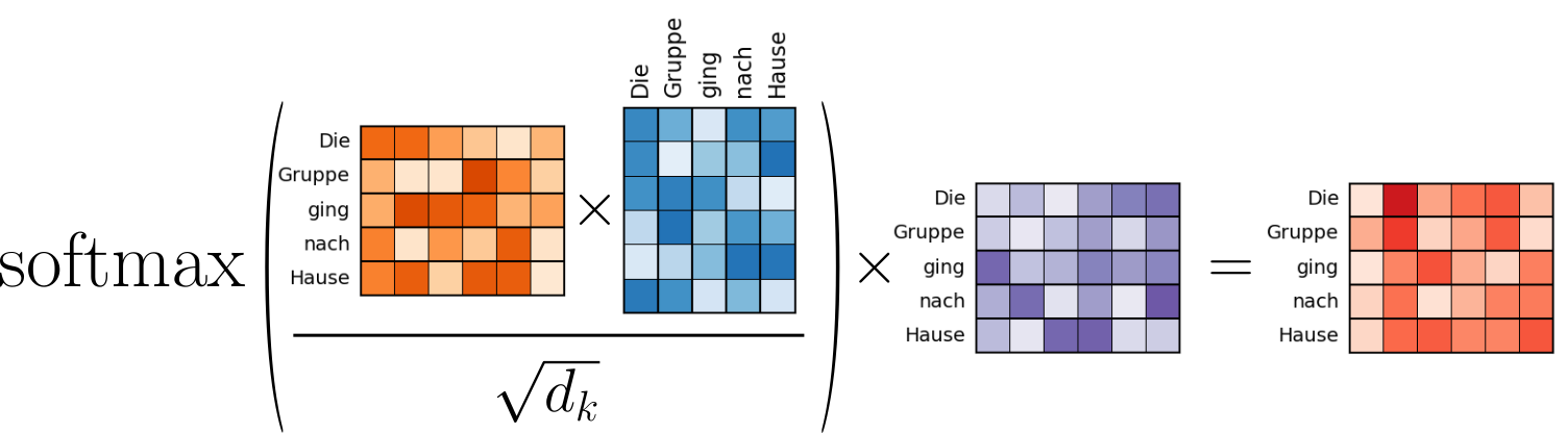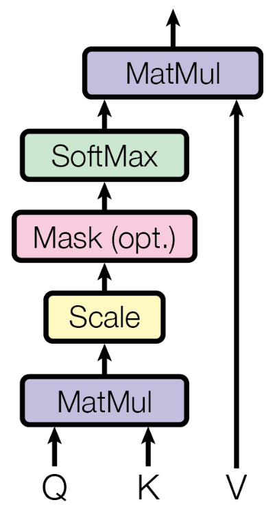 Just to make the connection to the original Transformer paper "Attention is all you Need", the figure below is directly taken from that paper to describe the all involved operations to calculate the scaled dot-product attention.