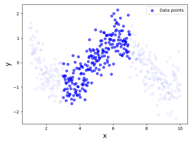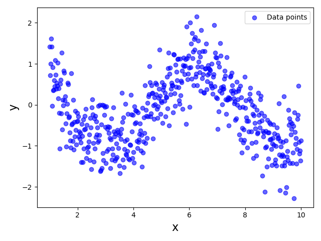 ax1.scatter(x1, y1, color='blue', alpha=0.6, label='Data points')