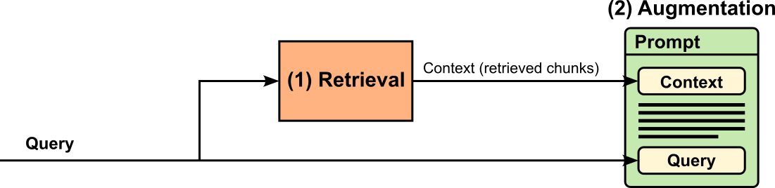 With the knowledge repository with all chunks stored and indexed, we can now use it to enhance the generation of responses to user queries by augmenting the queries with the most relvant chunk or set of chunks. We already outlined the basic workflow in the overview section showing the overall architecture of a basic RAG pipeline. Let's look at all the involved steps a bit more closely.