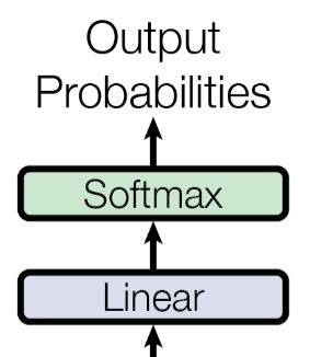 Notice how the size of the last dimension is now longer $512$ (assuming $d_{model}=512$) but $10,000$ reflecting the size of the vocabulary. We can also check for an example vector if all values now sum up to $1$, by adding up all values of the vector reflecting the first input word in the first sequence of the batch; see the code cell below.